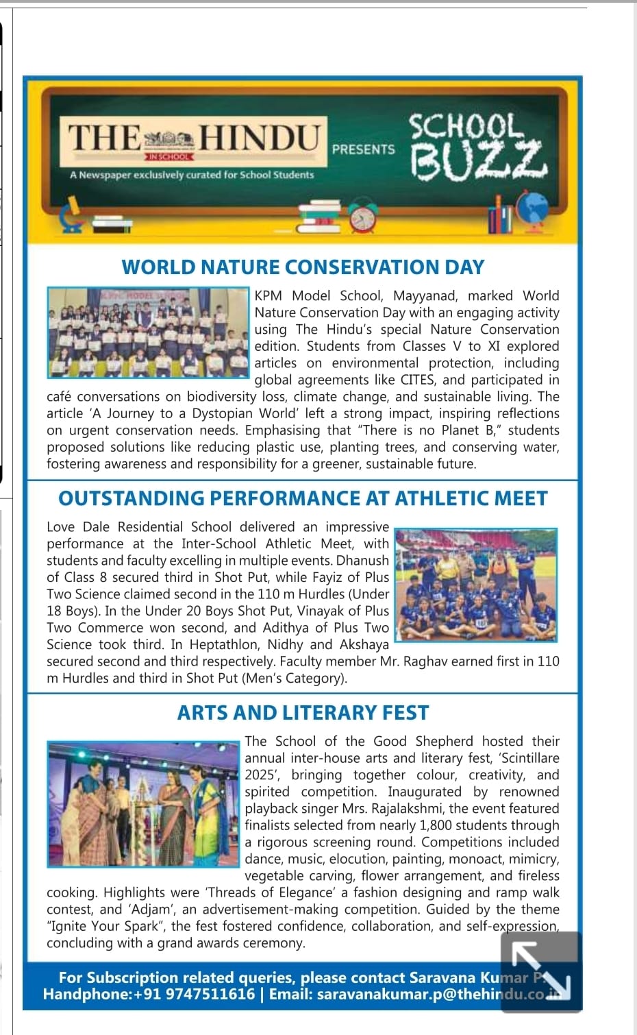 - Malayala Manorama Nallapadam Club of KPM Model School secured A Plus grade in Kollam district for the academic year 2023-24